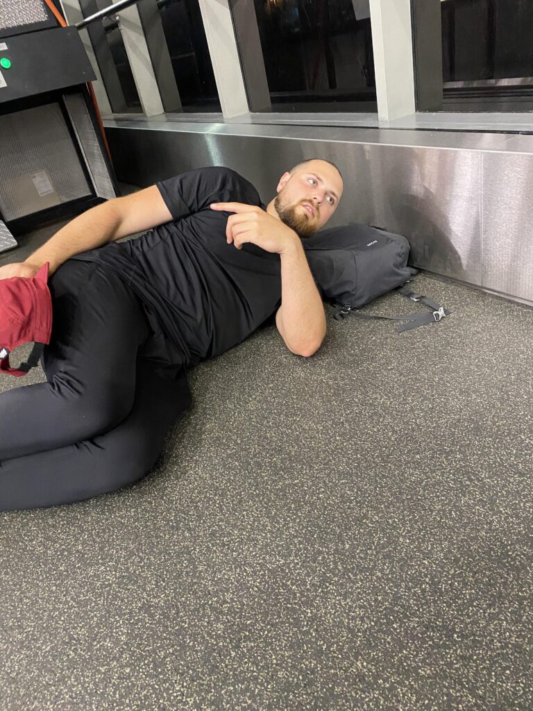 Après avoir essayer de dormir du mieux que nous pouvions, dans l’aéroport presque vide, nous avons attendu notre vol en direction de Charlotte. Concernant notre nuit de sommeil, elle se résume à dormir sur le sol...